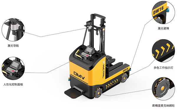 顛覆傳統(tǒng)叉車概念,零回轉(zhuǎn)半徑,側(cè)移,全方位無死角,任意漂移,告別傳統(tǒng)駕駛模式,可選配遙控器輕松操作,人身安全更有保障。新一代全向背負(fù)式堆垛車;麥克納姆輪全方位任意全向移動; 搭載激光自動導(dǎo)航系統(tǒng);設(shè)備運(yùn)行時(shí)有聲光警示;并設(shè)有系統(tǒng)故障診斷及電量顯示功能;具備無人化、無線遙控功能;手動遙控定位精度達(dá)到±0.5mm; 窄巷道運(yùn)行提升倉儲空間;控制面板顯示屏實(shí)時(shí)狀態(tài)顯示,并顯示故障信息。