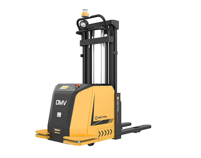 匯聚OMV采用舵輪驅動系統,托盤堆垛AGV具有結構簡單,使用可靠,轉彎半徑小,可實現對貨物的精準搬運,堆垛.