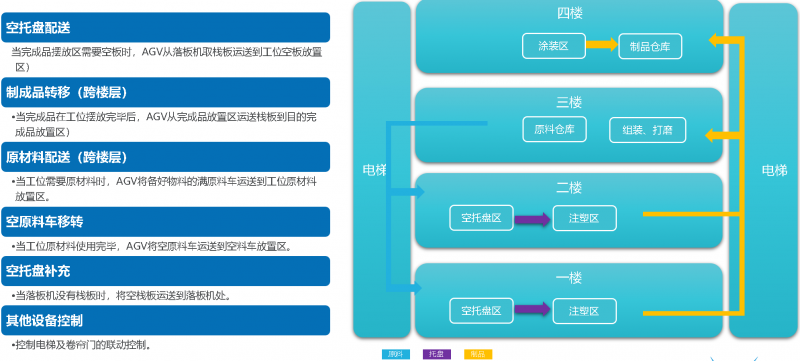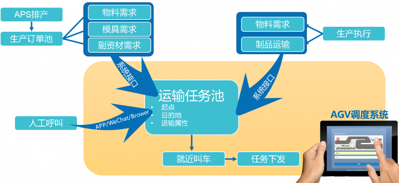 用AGV調度系統(tǒng)(VConn)完成物料計劃下發(fā),現(xiàn)場叫料之間的系統(tǒng)閉環(huán),考慮到異常送料需求,系統(tǒng)保留人工呼叫接口,可以快速與第三方系統(tǒng)或設備對接