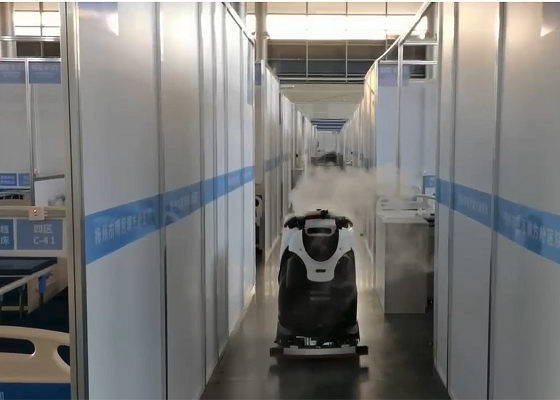 “小白,你好!請給手消消毒!”一名疫情防控工作人員路過正在工作的消毒機(jī)器人時,靠近機(jī)器伸出雙手,很快就完成了一次消毒。搭載紫外線燈、超干霧發(fā)生器和等離子空氣凈化等消毒模塊的消毒機(jī)器人,能在場館內(nèi)自由穿梭,可以24小時“不眠不休”。