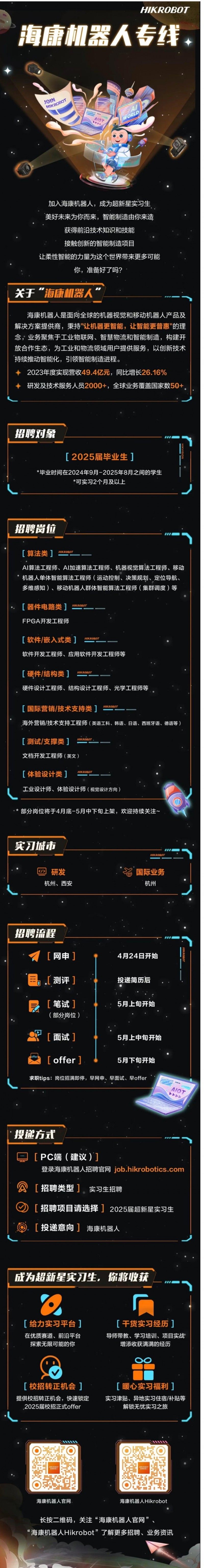 海康機器人2025屆超新星實習生火熱招聘中,點擊原文即刻投遞,和我們一起探索柔性智能的更多可能!