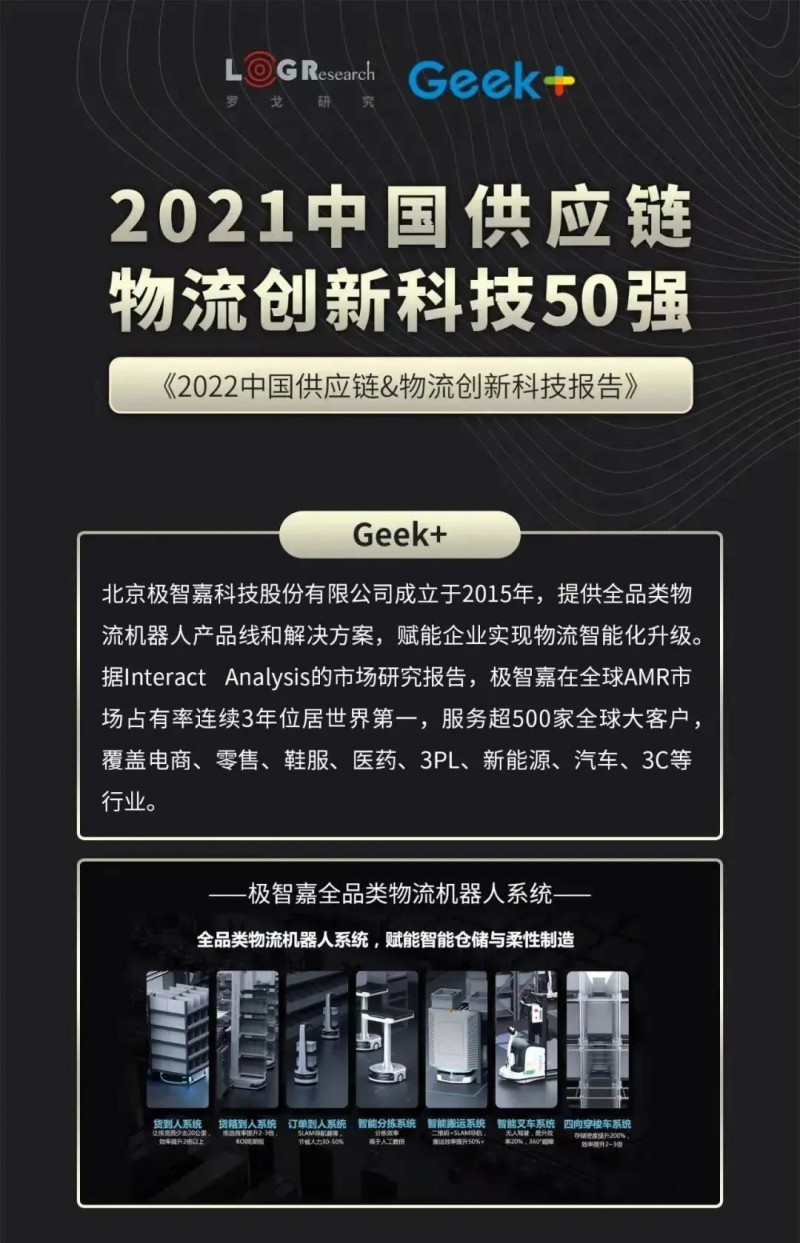 近日,物流商業(yè)智庫羅戈研究正式發(fā)布了《2022中國供應(yīng)鏈&物流創(chuàng)新科技報告》,并在報告中公布了2021中國供應(yīng)鏈物流創(chuàng)新科技50強。極智嘉“一站式RoboShuttle+P40全流程組合方案”再獲行業(yè)認可,憑借卓越的產(chǎn)品技術(shù)和方案的實際商業(yè)價值,承攬羅戈研究“2021中國供應(yīng)鏈物流創(chuàng)新科技50強”,為行業(yè)提供可借鑒的智慧物流應(yīng)用學習樣本。