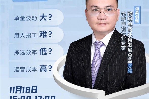 11月18日(下周四)下午4點,海柔創新跨境電商業務發展總監 廖毅將直播答疑
