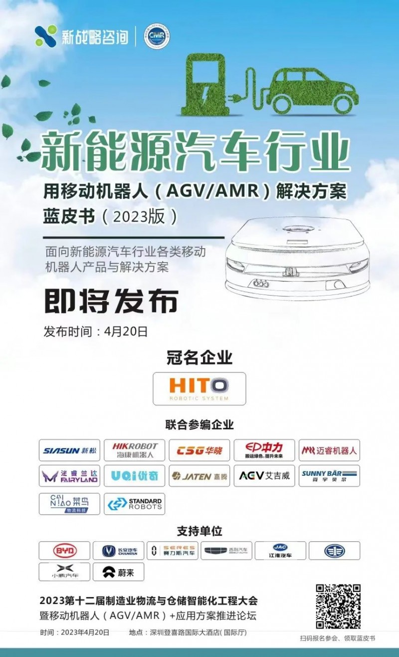 《新能源汽車行業用移動機器人(AGV/AMR)解決方案藍皮書(2023版)》是CMR產業聯盟與新戰略移動機器人產業研究所聯合出版的關于新能源汽車行業工業移動機器人(AGV/AMR)產品應用現狀、市場痛點、技術路線、主流企業、發展趨勢等詳細內參的藍皮書。藍皮書將面向全行業發行,重點向新能源汽車本體制造商、集成商、軟件服務商、政府投研等領域發行。