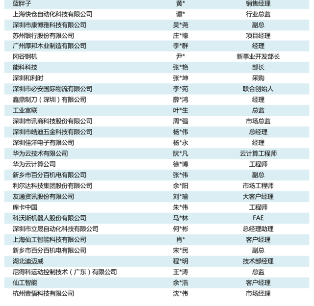 第十二屆制造業(yè)物流與倉儲智能化工程大會”第三批200人參會名單