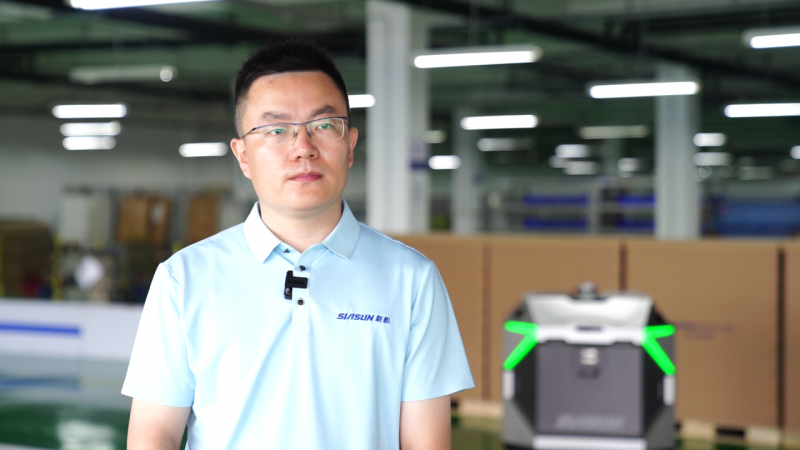 ▲ 新松點石科技有限公司副總經理毛明旭介紹此次星衛來工業清潔機器人交付情況