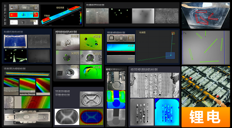 海康機器人3D解決方案完整覆蓋鋰電中段工藝,其中包括極片入殼前極耳焊接缺陷檢測、入殼后頂蓋焊縫尺寸測量、頂蓋周邊焊接缺陷檢測、頂蓋平整度檢測、注液封口后密封釘缺陷檢測、六面檢等。