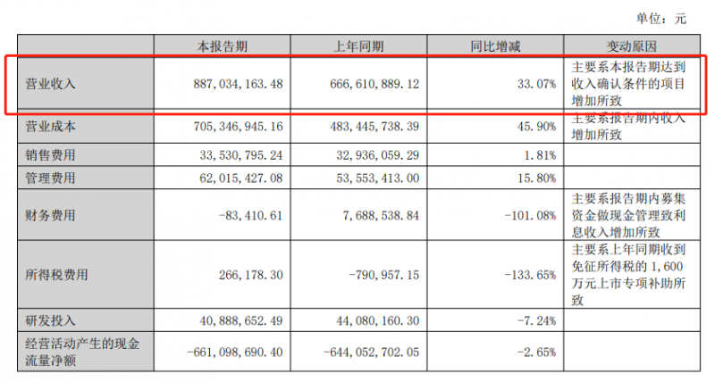 井松智能8月23日晚間發(fā)布半年度業(yè)績(jī)報(bào)告稱,2023年上半年?duì)I業(yè)收入約2.71億元,同比增加52.39%。報(bào)告期內(nèi),營業(yè)收入增長(zhǎng)主要系本報(bào)告期達(dá)到收入確認(rèn)條件的項(xiàng)目增加所致。
