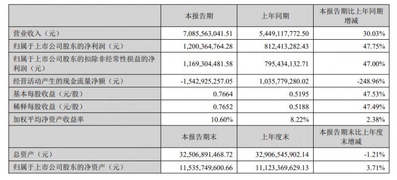 先導(dǎo)智能發(fā)布2023年半年度報(bào)告,該公司營業(yè)收入為70.86億元,同比增長(zhǎng)30.03%。歸屬于上市公司股東的凈利潤(rùn)為12億元,同比增長(zhǎng)47.75%。歸屬于上市公司股東的扣除非經(jīng)常性損益的凈利潤(rùn)為11.69億元,同比增長(zhǎng)47.00%。基本每股收益為0.7664元。報(bào)告期,設(shè)備驗(yàn)收較多,營業(yè)收入增加。