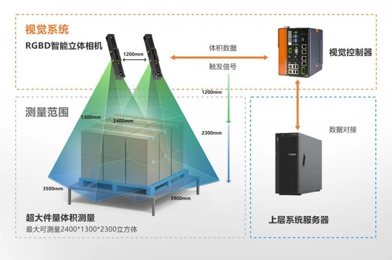 測(cè)量精度:±10mm,針對(duì)倉(cāng)儲(chǔ)物流,碼垛類型的超大件物體進(jìn)行體積測(cè)量。