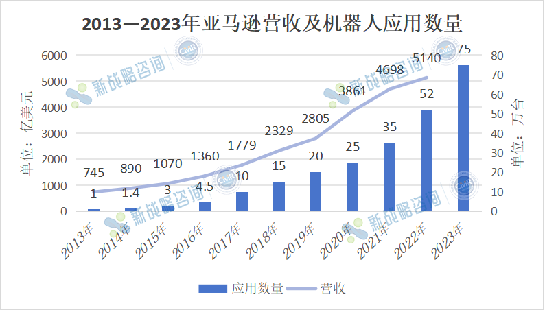 2013-2023年亞馬遜營收及機器人應用數量