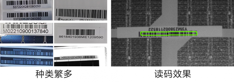 需求:電池片串焊排版后,匯流條處會(huì)貼附標(biāo)簽碼用于質(zhì)量追溯,需要透過一層毛玻璃,及一層EVA膠膜讀取,讀碼后實(shí)現(xiàn)至MES系統(tǒng)對(duì)接。