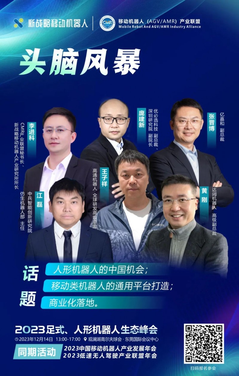 此次人形機器人專場會議圓桌討論環(huán)節(jié),達闥機器人高級副總裁黃剛,優(yōu)必選科技副總裁、深圳研究院副院長龐建新,億嘉和副總裁張晉博,中兵智能創(chuàng)新研究院仿生機器人部主任江磊,高通機器人全球研發(fā)高級總監(jiān)王子祥以及CMR產(chǎn)業(yè)聯(lián)盟秘書長、新戰(zhàn)略移動機器人產(chǎn)業(yè)研究所所長李進科將齊聚一堂,圍繞"人形機器人的中國機會;移動類機器人的通用平臺打造;商業(yè)化落地"等話題進行系列討論。