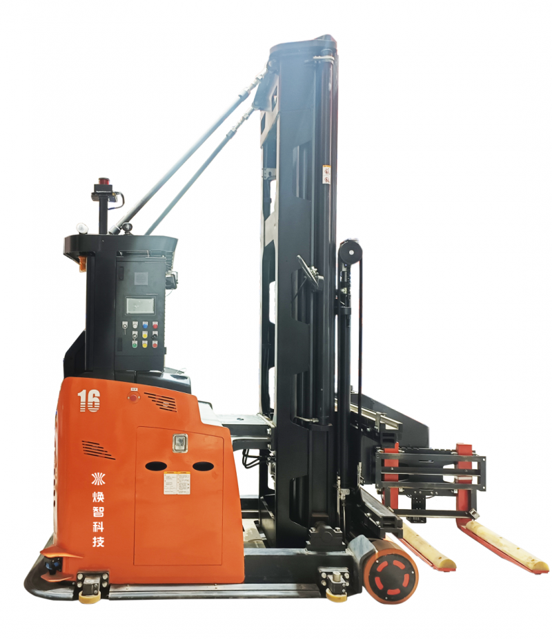 三向堆高式機(jī)器人采用先進(jìn)激光SLAM導(dǎo)航技術(shù),貨叉可以側(cè)移和180°旋轉(zhuǎn),可精準(zhǔn)定位并叉取貨物,實現(xiàn)窄巷道內(nèi)、地面到貨架、地面到地面等多種模式。