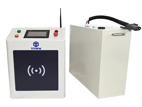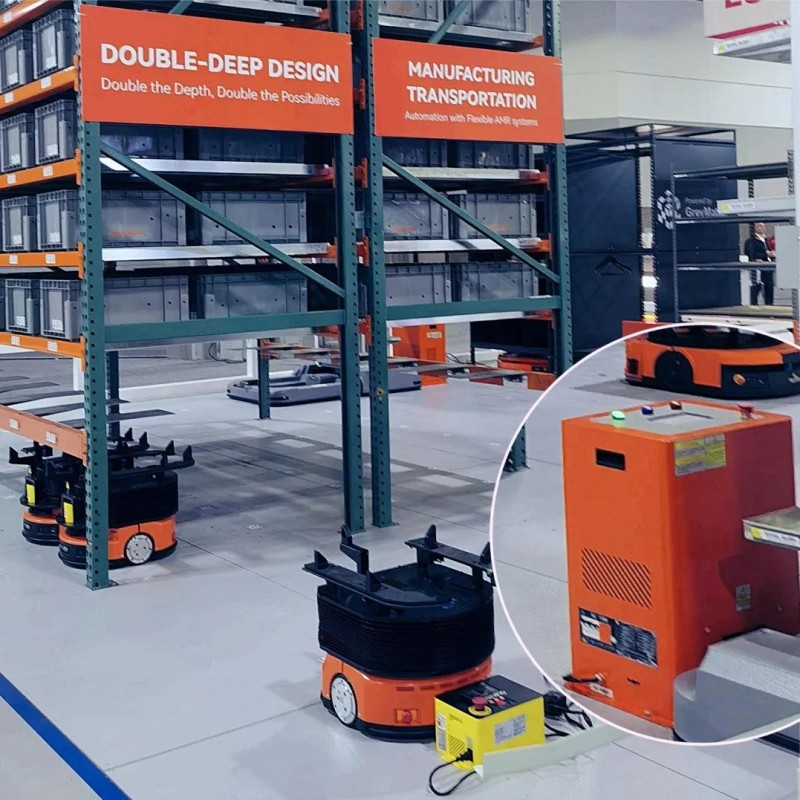 合作伙伴也攜帶了泰坦智能充電機去到展會,給新能源工業車輛以及移動機器人進行充電。
