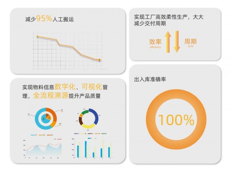 方案實(shí)現(xiàn)了對(duì)倉(cāng)儲(chǔ)信息和產(chǎn)線訂單的全流程數(shù)字化管理,提高了信息的準(zhǔn)確性和配送的及時(shí)性;物料信息全流程可追溯,大大提高了產(chǎn)品質(zhì)量管理效率。