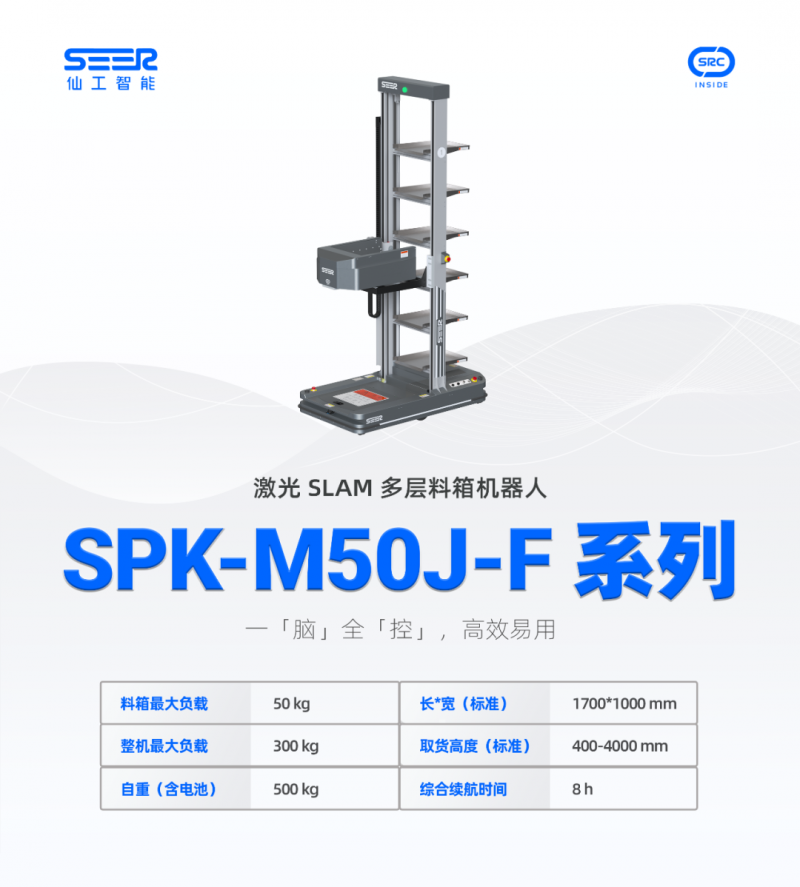 基于 SRC 控制器,SPK-M50J-F 系列實(shí)現(xiàn)行走、取放貨等動(dòng)作一體化控制,使得現(xiàn)場(chǎng)交付部署流程更簡(jiǎn)單,實(shí)際運(yùn)行易用性更強(qiáng),故障異常排查更高效,為客戶進(jìn)一步降本增效。