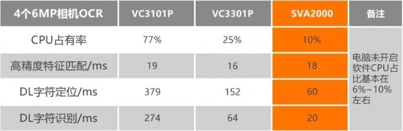 SVA2000利用硬件平臺的異構(gòu)特性對軟件架構(gòu)和算法效率進(jìn)行了深度優(yōu)化,在4相機(jī)應(yīng)用場景下,它的性能可以對齊桌面級CPU和GPU,能夠滿足大部分多相機(jī)視覺應(yīng)用的節(jié)拍要求。