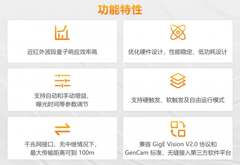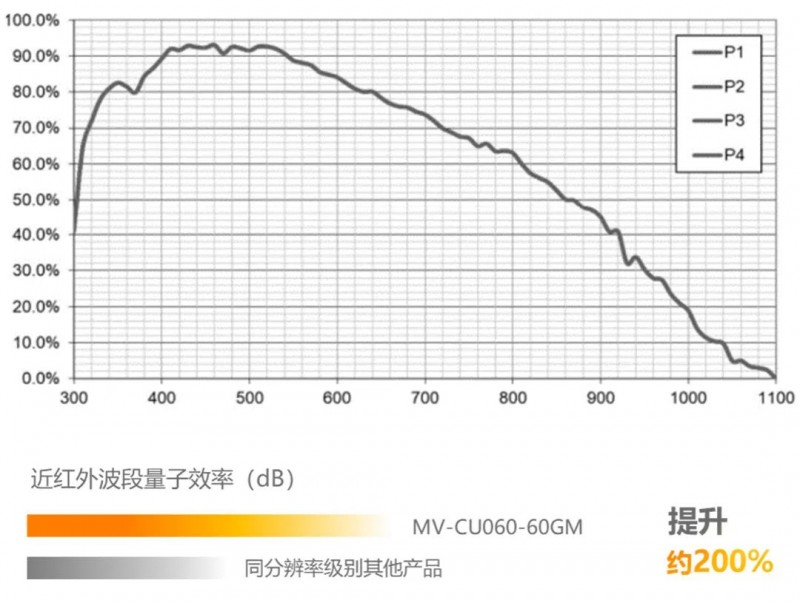 該相機近紅外波段的響應(yīng)效率顯著提升,能夠在近紅外光環(huán)境下保證成像效果,在常見的近紅外應(yīng)用中,如光伏、激光檢測、眼科醫(yī)療等應(yīng)用中,能夠確保細(xì)節(jié)的獲取與圖像亮度效果的呈現(xiàn)。