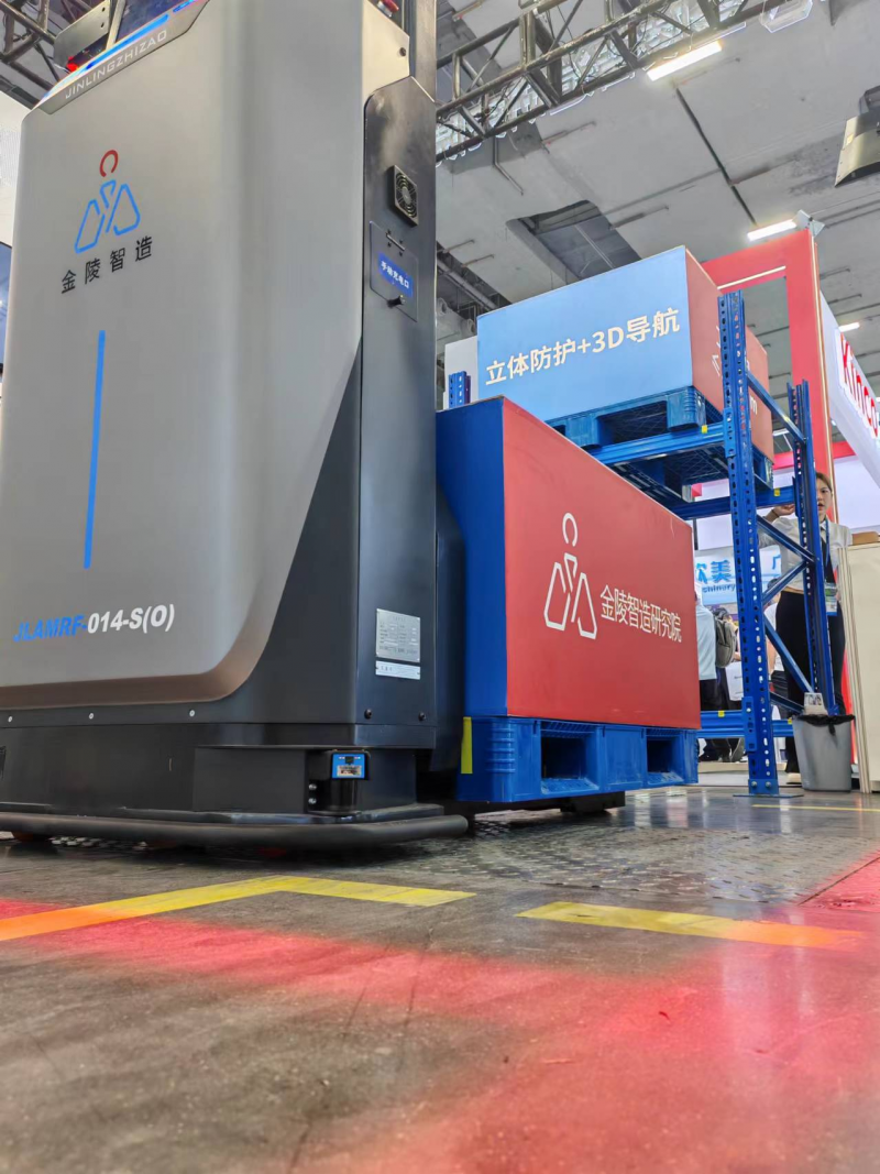 江蘇金陵智造研究院有限公司攜JLAMRF-014-S(O)全向窄巷道堆高型叉式AMR、WMS智慧倉庫管理系統、RCS智能機器人調度管理系統、重載差速驅動輪等產品亮相展會。其中,JLAMRF-014-S(O)叉式AMR是金陵智造研究院今年5月重磅推出的一款具備全向運動、托盤自適應叉取、3D激光導航、立體避障的新型無人叉車。該產品集產線托盤物料上下線、線邊托盤物料儲存、托盤物料搬運、托盤物料存儲等多項應用場景于一體,是托盤類物料存儲運輸的多面手。