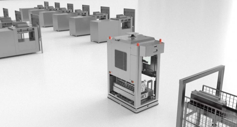 一體式方案,根據(jù)不同料盒形態(tài)的轉(zhuǎn)運需求,應(yīng)用適配的移動機(jī)器人完成相應(yīng)工序間的物料轉(zhuǎn)運。由于物料是直接存放在一體式機(jī)器人的倉位內(nèi),當(dāng)出現(xiàn)前后工序間物料上下料節(jié)拍不匹配的場景時,一體式機(jī)器人可將物料存放在緩存站內(nèi),用于平衡工序間的生產(chǎn)節(jié)拍。