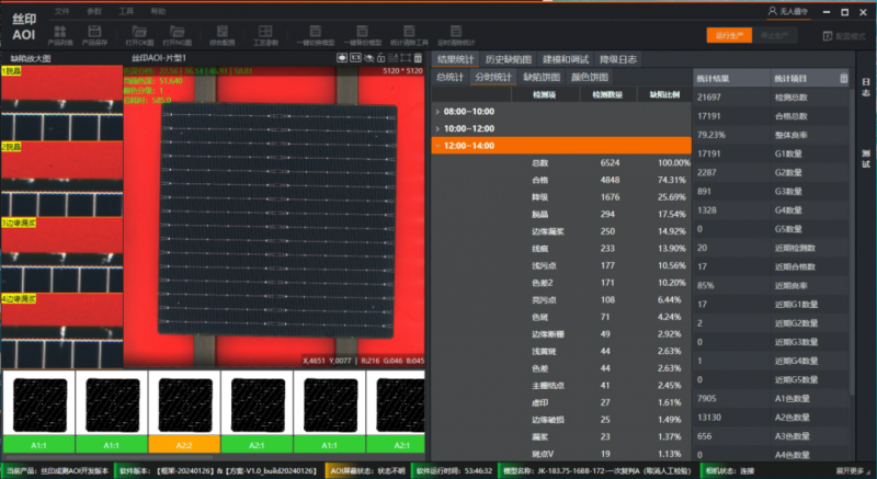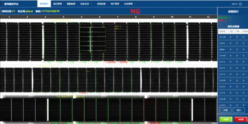 為了更好地追溯電池組件的全流程質(zhì)量,海康機(jī)器人定制開發(fā)了光伏組件決策看板,從單站檢測到各個機(jī)臺的集控復(fù)判,整個工廠的數(shù)據(jù)匯總、運行狀態(tài)一目了然。