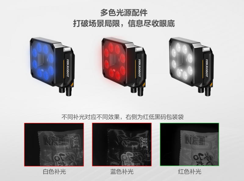 除常見的鏡頭罩及多色補光外,還支持擴展高亮光源、多色光源以及行業專用光源等,場景適應能力更強。