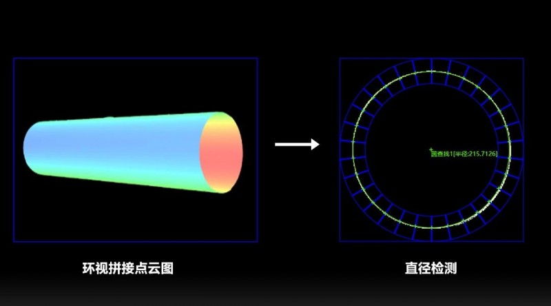 通過多相機環(huán)視拼接,還原線纜/管材外表面點云,實時檢測線纜/管材任意橫截面的直徑,避免不良品流出。