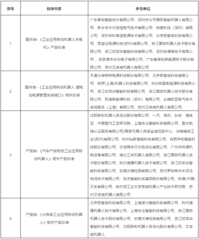 圖表:移動機器人產(chǎn)業(yè)聯(lián)盟制定的6項團體標準