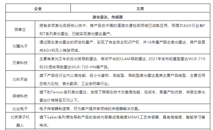 表:北京AGV相關零部件廠商(本表粗略統計,如有未完善之處,請指正!)