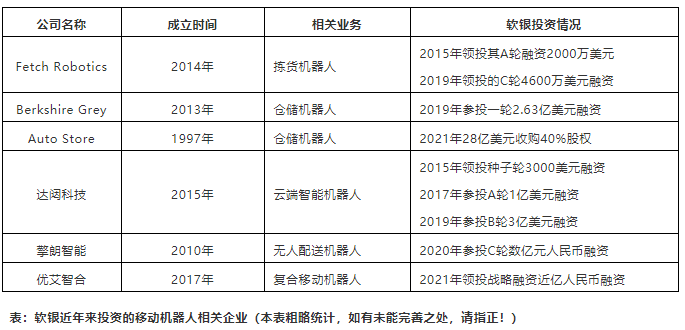 除了上述三家國(guó)外企業(yè)外,中國(guó)市場(chǎng),軟銀也先后投資了達(dá)闥科技、擎朗智能以及優(yōu)艾智合三家移動(dòng)機(jī)器人企業(yè)。
