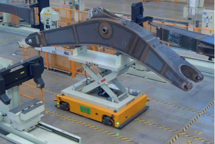 ①車橋生產(chǎn)制造工藝復(fù)雜,涉及的物料種類多樣,其中最大規(guī)格的物料滿載約18噸,對底盤要求較高;②重載AMR既有室內(nèi)運輸場景,也有室外遠距離運輸場景,對融合導(dǎo)航的無縫切換有著極高要求;③項目地天氣雨水較多,室外物料運輸不能長時間雨淋,且大雨天氣會對導(dǎo)航的精度、速度帶來一定影響;④項目中的10余臺裝配線磁導(dǎo)AGV與數(shù)臺室外重載AMR共用一套調(diào)度系統(tǒng),這就對調(diào)度系統(tǒng)的穩(wěn)定性、兼容性等要求較高;①根據(jù)用戶實際工況,設(shè)計了一款載重20噸的室內(nèi)外重載AMR;采用 GPS+慣導(dǎo)+激光SLAM 融合的導(dǎo)航技術(shù),可室內(nèi)外無縫切換導(dǎo)航方式,實現(xiàn)在不同環(huán)境中的穩(wěn)定運行;車身采用翼開箱結(jié)構(gòu),使運輸物料免受雨水侵襲,同時多重的安全保障傳感器確保了穩(wěn)定運行;②專門為裝配線數(shù)臺重載AMR和十余臺室內(nèi)磁導(dǎo)AGV設(shè)計的調(diào)度系統(tǒng),既能滿足生產(chǎn)需求,也可滿足物流運輸需求。①改善產(chǎn)線生產(chǎn)效率。這是國內(nèi)首例室內(nèi)產(chǎn)線+室外物流運輸共用一套調(diào)度系統(tǒng)的AMR應(yīng)用項目,也是國內(nèi)首個汽車行業(yè)室外重載AMR應(yīng)用,節(jié)省了相關(guān)配送成本,實現(xiàn)了生產(chǎn)所需物料的精準(zhǔn)高效配送;②為用戶智能化轉(zhuǎn)型賦能。作為集團第一個實現(xiàn)室外物料智能化轉(zhuǎn)運項目,展示了用戶在智能化、數(shù)字化工廠建設(shè)上的亮點、看點,提升了企業(yè)生產(chǎn)的智能化、數(shù)字化水平。通過AGV自動轉(zhuǎn)運實現(xiàn)了挖掘機動臂的組焊、焊接、打磨、轉(zhuǎn)運全自動運行。由MES系統(tǒng)下發(fā)計劃,AGV與焊接工作站互聯(lián)互通,AGV由上料點取動臂物料,并自動運輸至機器人焊接工作站。焊接完成后,自動運送至補焊工位;補焊完成后,由AGV跨車間自動運輸至噴漆線。難點:1.工件長度和重量較大、種類多且外形不規(guī)則,需要AGV根據(jù)不同規(guī)格實現(xiàn)精準(zhǔn)定位。2.生產(chǎn)現(xiàn)場布局緊湊,轉(zhuǎn)運路線復(fù)雜,需要側(cè)移等功能,轉(zhuǎn)向精度要求嚴(yán)格。3.出入車間的坡度較大,室外道路環(huán)境復(fù)雜差異大。創(chuàng)新點:1.合理的結(jié)構(gòu)設(shè)計,實現(xiàn)重載AGV的前進、側(cè)移、升降高精度定位;2.小巧車體可載重10噸以上物料,實現(xiàn)復(fù)雜路線靈活應(yīng)用;3.重載AGV滿足室內(nèi)外全工況運行。AGV不需要人工操作,降低制造成本;AGV安全避讓保證員工的工作安全,避免因工作人員的疏忽或疲勞而造成的工傷事故和損失;AGV的操作精度更高,穩(wěn)定性更好,安全性更強。3、天津朗譽240噸背負式舉升重載AGV風(fēng)電行業(yè)應(yīng)用風(fēng)電行業(yè)機艙總成下線從車間內(nèi)組裝工位到車間室外成品存儲工位的運輸;特點:過軌、坑洼復(fù)雜地面自適應(yīng);自帶稱重測試及質(zhì)心顯示;與工裝對接自動左右對中系統(tǒng);零下30°C極寒環(huán)境情況下正常工作。難點:極寒環(huán)境內(nèi)保證AGV正常運行;創(chuàng)新點:重載AGV產(chǎn)品以大尺寸、高承載為特征,它可以將大型物件的加工、搬運等環(huán)節(jié)以自動化形式實現(xiàn)。特別是在航空航天、軍工、風(fēng)電等應(yīng)用場景,都需要大型噸位的 AGV產(chǎn)品來滿足。通過首臺AGV順利導(dǎo)入風(fēng)電行業(yè),讓天津朗譽在風(fēng)電行業(yè)占有一席之地,比如金風(fēng)科技、明陽智能等企業(yè)陸續(xù)合作。4、航發(fā)機器人240t級重型運輸車風(fēng)電行業(yè)應(yīng)用隨著風(fēng)力發(fā)電機組單機功率越來越大,其部件尺寸和重量也越來越大,部分機艙重量甚至超過300t。已有的風(fēng)電機組生產(chǎn)車間,存在無法適應(yīng)新型號更大功率機組生產(chǎn)和組裝的問題。行車起吊還存在無法將工件在車間之間進行轉(zhuǎn)運,無法將工件運到室外的問題。2020年初航發(fā)接到客戶需求,需定制額定承載200t(總重240t級)運輸車,以實現(xiàn)風(fēng)電機組部件在車間內(nèi)各工位之間的轉(zhuǎn)運,以及將部件成品運輸至室外進行裝車。經(jīng)過近三個月的設(shè)計制造,運輸車于2020年6月底順利交付客戶。由于運輸車總重達240t,整車需采用12組20t級差動舵輪單元,多輪組均勻受力及多電機同步協(xié)同控制成為本項目的主要難點。由于整車會托舉大型部件在車間狹窄的空間內(nèi)運行,整車運動控制需要非常靈活,對運動控制算法提出了較高要求。240t級運輸車的順利投用,大大提高了客戶的裝配生產(chǎn)效率,也使車間內(nèi)布局更加緊湊,縮短了裝配和發(fā)貨時間,降低了生產(chǎn)組織管理壓力,給客戶帶來了很大的經(jīng)濟效益。運輸車投用后良好的使用效果,也讓航發(fā)品牌在風(fēng)電行業(yè)獲得了很好的口碑。該產(chǎn)品負載能力75t,應(yīng)用于鋼鐵廠的轉(zhuǎn)運工作。隨著重工制造業(yè)產(chǎn)線柔性化升級,以及智能化物流的的需求,在大型工件的物流轉(zhuǎn)運由傳統(tǒng)的人工駕駛牽引貨車向自動轉(zhuǎn)運轉(zhuǎn)變。該款室外重載型AGV完全取代了人工貨車,實現(xiàn)了鋼板等原材料室內(nèi)和室外的輸送。戶外(重載)型AGV適用于室外大型貨物或大量貨物轉(zhuǎn)運,以取