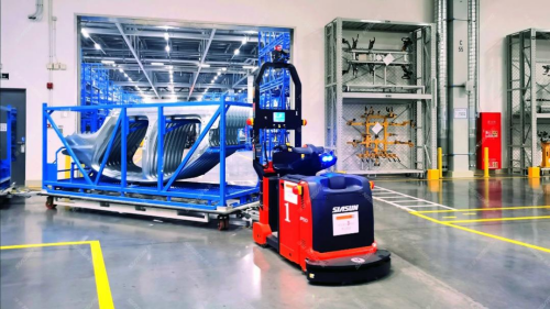 圖:新松叉車AGV發(fā)動機工廠應(yīng)用