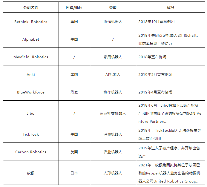 在整個機器人行業(yè)蓬勃向前的同時,有一些企業(yè)在逐漸“掉隊”,近年來關閉或出售機器人相關業(yè)務的事件多達數起。