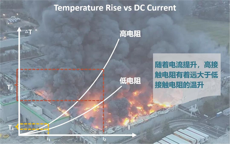 快速補能是提升移動機器人作業(yè)效率,降低閑置率的重要方式。由于自動換電成本較高,適用場景有限,快充是當前實現(xiàn)快速補能的主要形式。今年主流廠商發(fā)布的新一代移動機器人,開始追求更短的充電時長和更高的充放比。室內(nèi)移動機器人(非重載)的充電電流從過去的10-20A提升至60-70A左右,有些要求更高。大電流雖然可以提升充電效率,但是同時也會帶來更高的風險。當電流較大時,充電連接點作為電阻較大位置,一旦出現(xiàn)接觸不良,溫升會變得很高,高溫升可能會導(dǎo)致出現(xiàn)短路、熔焊、電弧等現(xiàn)象,嚴重時可以引發(fā)火災(zāi)。英國最大生鮮電商Ocado的自動化倉庫,曾因倉庫機器人充電故障引發(fā)大火,造成1.37億美元損失。因此,安全是提升移動機器人充電效率的前提。