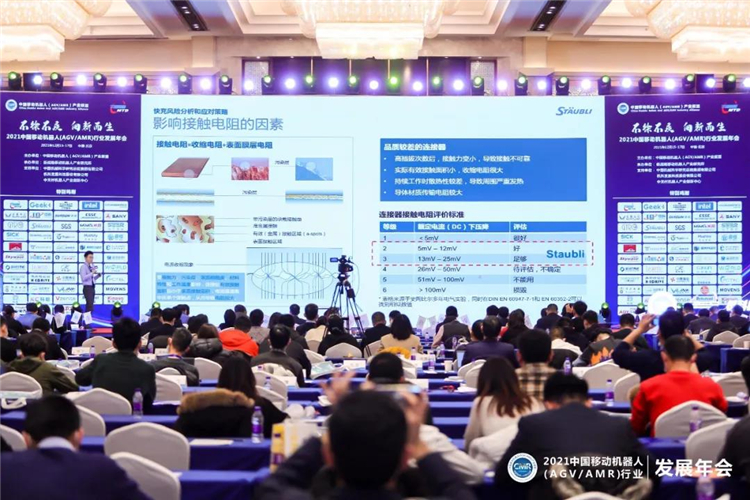 12月15-17日,由中國移動機器人(AGV/AMR)產(chǎn)業(yè)聯(lián)盟主辦的“2021 中國移動機器人(AGV/AMR)行業(yè)發(fā)展年會”在北京龍熙維景國際會議中心舉行,大會以“不徐不疾,向新而生”為主題,對當前產(chǎn)業(yè)現(xiàn)狀和未來發(fā)展趨勢進行了深入探討。史陶比爾作為聯(lián)盟理事成員企業(yè),做了題為《大電流快充對充電連接的挑戰(zhàn)》的專題發(fā)言。