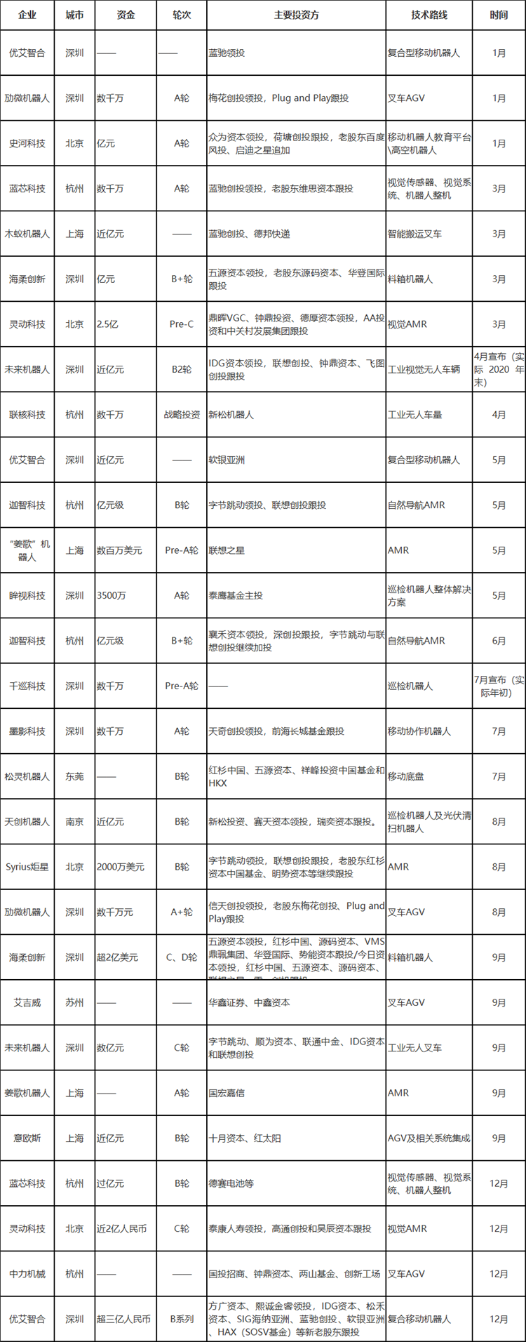 表:2021中國工業應用移動機器人行業投融資情況(本表根據企業公開融資信息統計,如有未完善之處,請指正!)