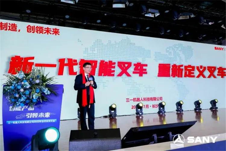 2022年1月7日,以“智能產(chǎn)品,引領未來”為主題的三一機器人科技有限公司2022年合作伙伴大會在湖南長沙舉行,會議上,三一機器人賦能離散智能制造一體化解決方案正式發(fā)布,AGV新品和3噸高壓鋰電平衡重叉車新品震撼亮相。