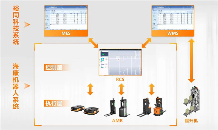 機(jī)器人控制系統(tǒng)RCS 無縫對接裕同的WMS以及MES系統(tǒng),對接提升機(jī)進(jìn)行跨樓層任務(wù),24 小時(shí)全方位管理AMR的運(yùn)行狀態(tài)和路徑規(guī)劃。AMR穿梭在原材料倉庫、生產(chǎn)車間、成品倉庫,用自動(dòng)化、智能化手段,簡化規(guī)范了現(xiàn)場工藝流程,高效完成各類物流任務(wù)。
