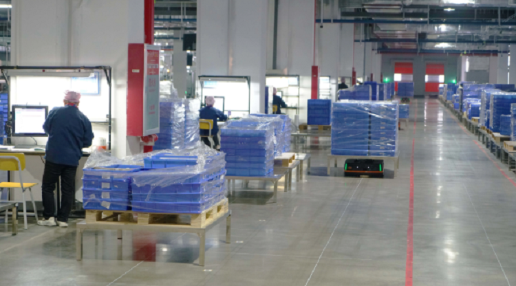 目前已部署潛伏和叉取系列機(jī)器人,共計(jì)近300臺(tái)AMR運(yùn)行在智能工廠中,覆蓋3個(gè)樓層,涉及原材料倉儲(chǔ)、車間產(chǎn)線配送、成品倉儲(chǔ)。