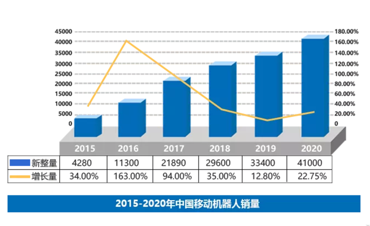 根據(jù)新戰(zhàn)略機器人產(chǎn)業(yè)研究所統(tǒng)計,中國移動機器人近三年的累積銷量已經(jīng)超過10萬臺,中國工業(yè)應(yīng)用移動機器人2015~2020年銷量如下圖
