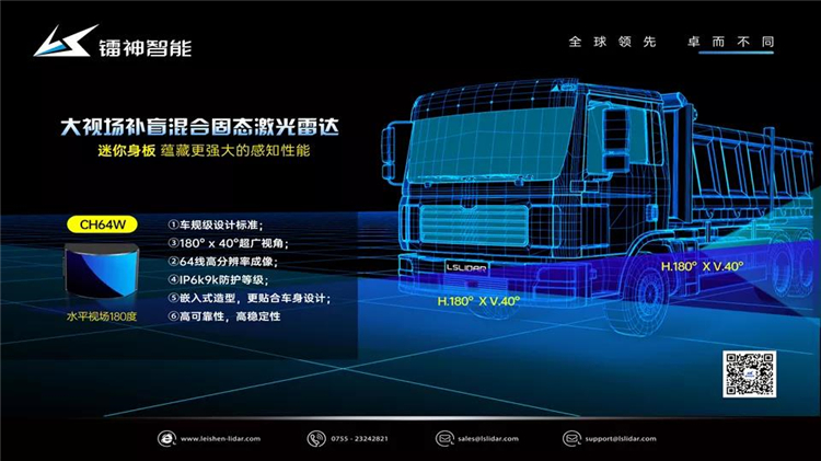 鐳神智能另一重磅新品——大視場補(bǔ)盲激光雷達(dá)CH64W,作為專為掃除盲區(qū)設(shè)計的產(chǎn)品,CH64W可應(yīng)用在汽車、機(jī)器人、AGV等領(lǐng)域的行駛盲區(qū)監(jiān)測,其擁有180°x 40°的超廣水平視場角,測量精度精確至±3cm,能夠高效識別近距離范圍內(nèi)的障礙物。與鐳神智能其他功能的激光雷達(dá)組合搭配,適配不同應(yīng)用需求,提供更精確、全面的監(jiān)測感知。
