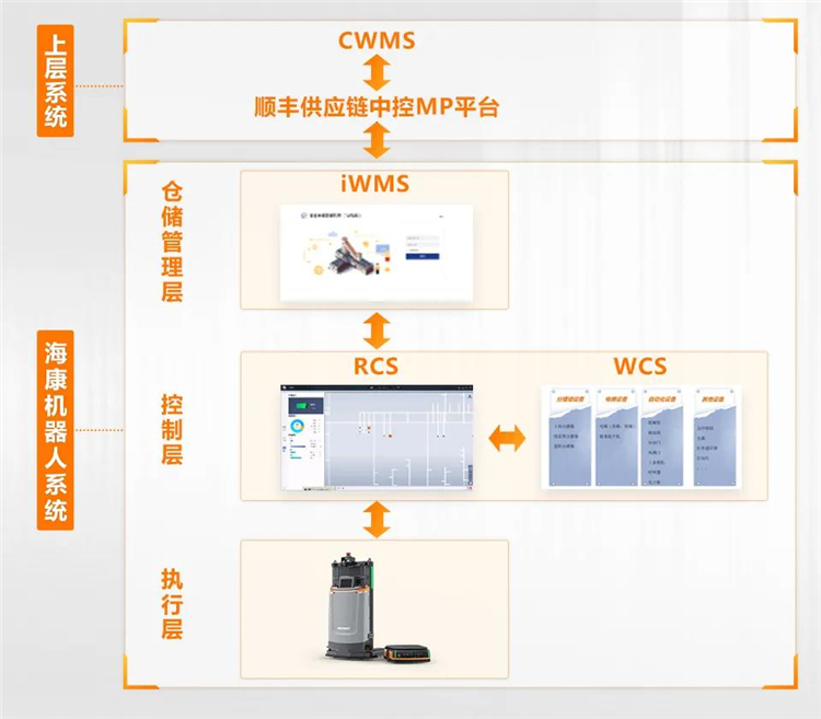 該公司將庫區(qū)用于普通國內(nèi)物料與保稅物料的存儲與中轉(zhuǎn),投入潛伏機器人和全向叉取機器人近150臺。機器人控制系統(tǒng)RCS和智能倉儲管理系統(tǒng)iWMS無縫對接順豐供應(yīng)鏈上層模組化平臺管理系統(tǒng),實現(xiàn)倉儲業(yè)務(wù)的貨到人管理和物流信息可視。