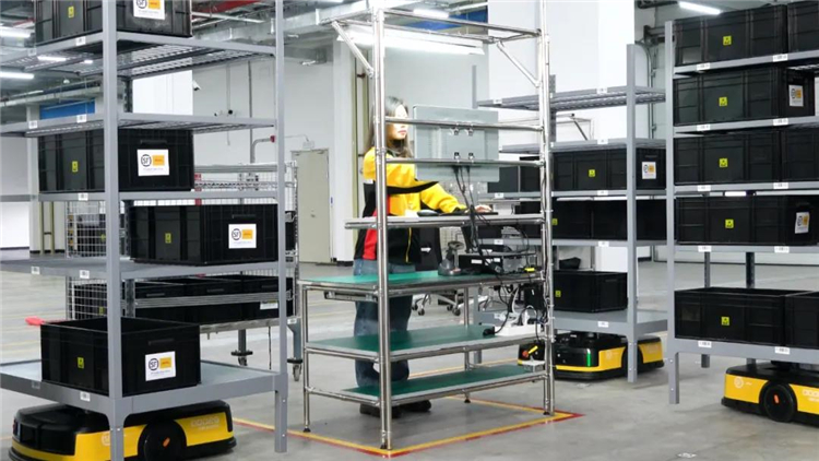 通過機器人自動將存儲物料搬運至指定工作站,整體找貨能力提高30%有余,大幅縮短“人找貨”時間。