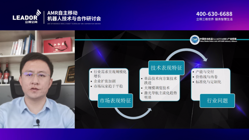 立得空間智能機器事業(yè)部銷售總經(jīng)理黃維分享了立得空間在AMR自主移動機器人領(lǐng)域的合作案例。他指出,立得空間利用核心技術(shù)和產(chǎn)品已為數(shù)千家底盤廠家賦能。其中,核心產(chǎn)品“路霸”機器人行進系統(tǒng)(PNS)采用3Dslam技術(shù)路線,經(jīng)過五年的迭代更新,適應(yīng)各種復(fù)雜場景,在室內(nèi)外、上下坡、高速和人車混流等場景實現(xiàn)定位導(dǎo)航,滿足不同場景下的柔性導(dǎo)航需求。