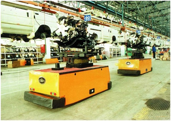 1991年起,中科院沈陽自動化研究所/新松機器人自動化股份有限公司為沈陽金杯汽車廠研制生產了客車6臺AGV用于汽車裝配線中,完成了AGV從實驗室樣機到生產一線產品的跨越。